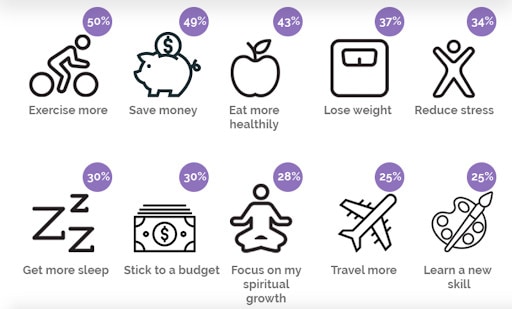 As I kept scanning Google, I found this list of the most common new year’s resolutions for 2020. Each of them show the percentage of people who set one and what their focus is for the new year.